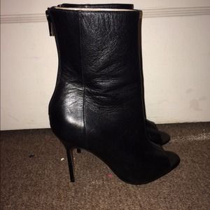 100 % AUTHENTIC‼️ Purchased from OFF SAKS ‼️ Worn Once , No Box . Manolo BlahnikBasketta Peep-Toe BootieDetailsSoft leather bootie by Manolo Blahnik.4 1/2" covered heel.Approx. 6"H shaft.Peep toe.Back zip. Leather lining and sole."Basketta" is made in Italy.Sizing note: Manolo Blahnik runs small.