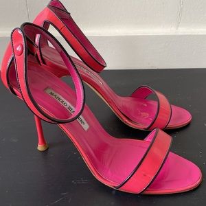 Manolo Blahnik Pink Patent leather Heel with Black Trim and Ankle Strap Size 39
