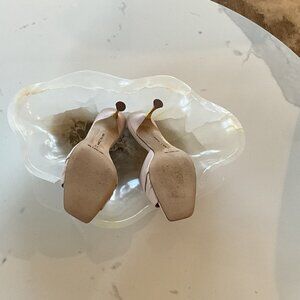 Manolo Blahnik Pink Slide sandals with gold tip heel