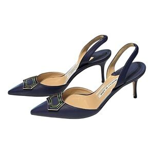 Manolo Blahnik Pointed Toe Slingback Halter Pump Leather Buckle Kitten Heel 39
