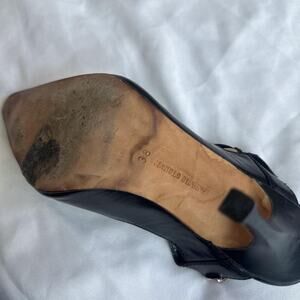 Manolo Blahnik Pointy Toe’d Black Pumps with Silver Chain Ankle Strap and Buckle