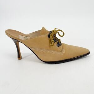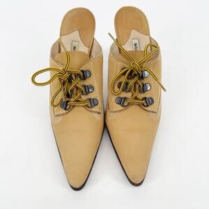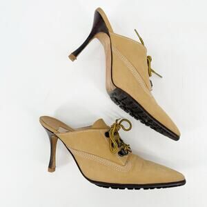 Manolo Blahnik Retro y2k Tan Oklamod Timberland Lace Up Pointed Toe Mule IT 36.5