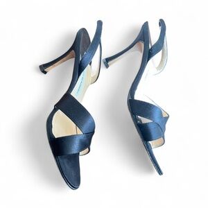 Elegant and on trend! Criss-cross sling back sandals. Black satin. Very good used condition. worn twice. Size 37.