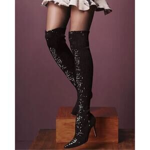 Manolo Blahnik Sequined Pascalare Over the Knee Boots Black Size 37.5