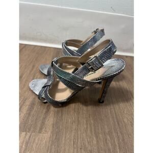 Manolo Blahnik Silver Pebbled Leather Ankle Strap Heels Sz 36.5 (6)