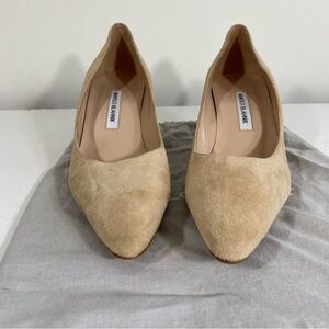 Manolo Blahnik Srila Suede Low-Heel Pump Nude Beige Tan Kitten Heel 40