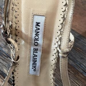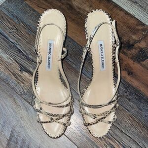 Manolo Blahnik Strappy Snake Heels with dust bag, size 41. These are in excellent condition! Barely worn as you can see in photos! Hand made in Italy!
