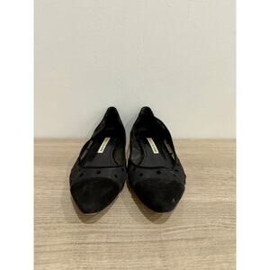 Manolo Blahnik Suede/Mesh Polka Dot Slip On Pointed Toe Flat Shoes Black EU 36.5