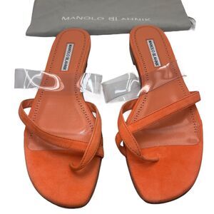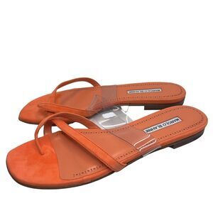 Manolo Blahnik Susina Crisscross Toe-Strap Flat Sandals Orange Size 41.5
