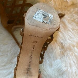 Manolo Blahnik Tan Stiletto Heels with Cage Design size 38.5