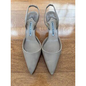 Manolo Blahnik Taupe Leather Slingback Pointed-Toe Heels Size 38