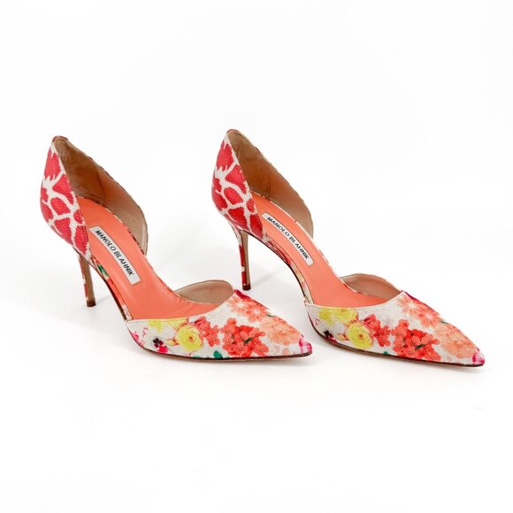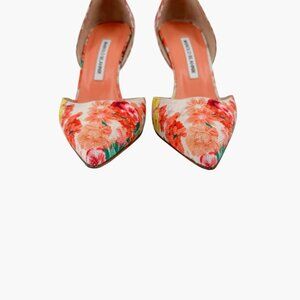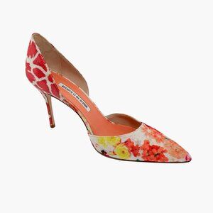 Manolo Blahnik Tayler Orange Floral Fabric D’Orsay Pumps Heels Size 40 US 10