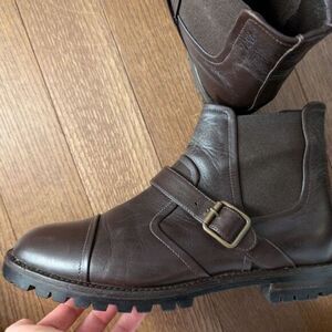 Burgundy Traba lug sole bootie, very sturdy and well made by Manolo Blahnik. Runs slightly small so EU 39 1/2 fits like a 39 or 9. With buckle detail, made in Italy