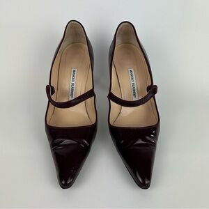 Manolo Blahnik Vintage Campari Burgundy Pointed Toe Mary Jane Heels Size 39.5