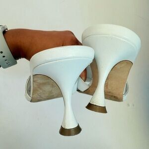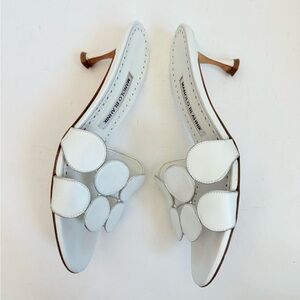 Manolo Blahnik White Lamb Leather Haribalmu 50mm open toe mules EU 38.5