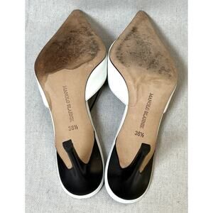 Manolo Blahnik White Leather Lace-Up Pointed Toe Mules Heels Size 36.5 Italy