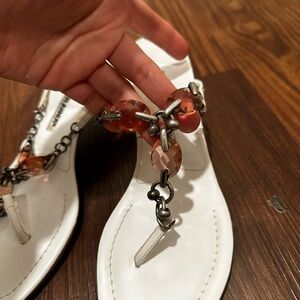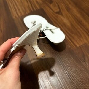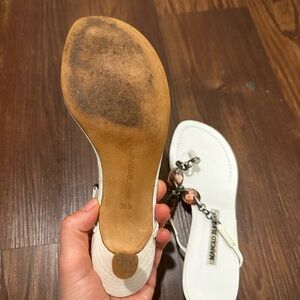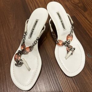 Manolo Blahnik White Thong Metal/Jeweled Heels Size 36.5