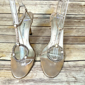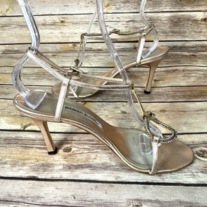 Manolo Blahnik Womens Metallic Pink Strappy Open Toe Heels w Rhinestone 37.5/7.5