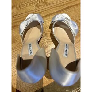 Manolo Blahnik cream satin D'orsay stiletto's 41 1/2 bow peep tow Italy New