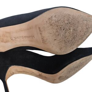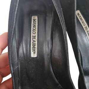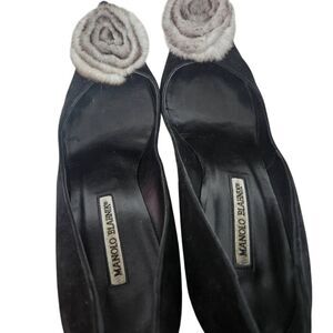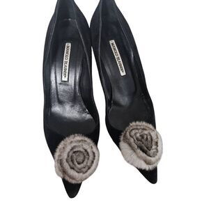 Excellent clean pre-loved condition Manolo Blahnik high heels for women size 41, black color with gray pom pom in the front. Approximately 3" heels. Sign of wear on the heels.
