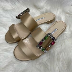 Manolo Blahnik Beige/Nude Rhinestone Verda Flat Sandal EU 40