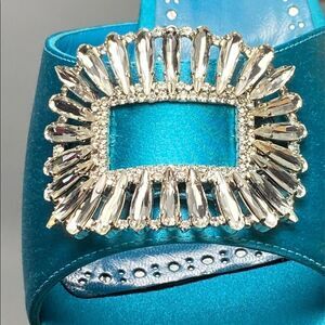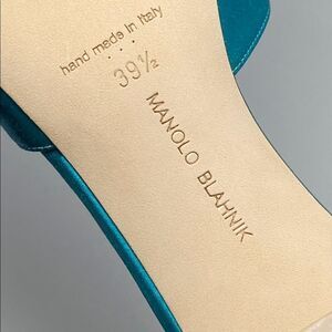 Manolo Blahnik Laalita 50 Embellished Buckle Satin Mules size 39.5