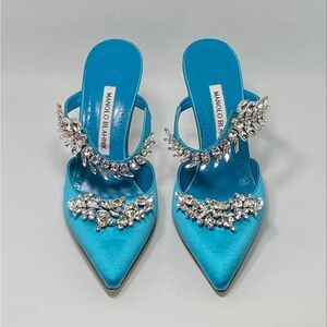 Manolo Blahnik Lurum 90 Embellished Satin Mules size 37