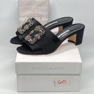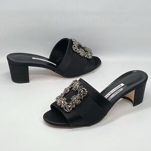 Manolo Blahnik Martanew 50MM Embellished Satin Mules size 37.5