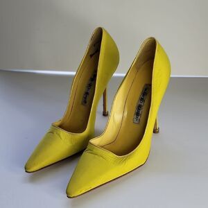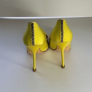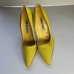 Step out in style with these vibrant yellow heels from Manolo Blahnik. Perfect for adding a pop of color to any outfit.