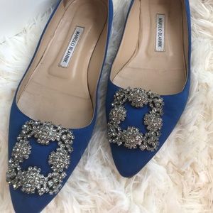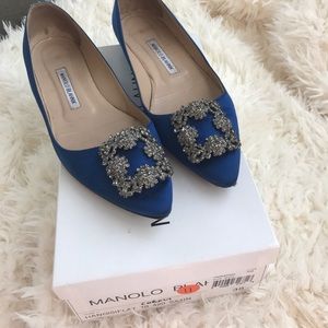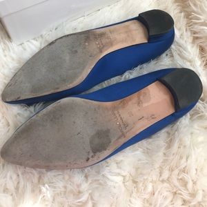 Beautiful Hangisi flats in cobalt blue. Comes with original box and both dust bags. In used condition with wear to the soles and insoles. Small snag to the satin on the back of right heel and small stains near the tip of the toes. All of which aren't very noticeable when the shoes are being worn. Perfect addition to any wardrobe for spring! Size EU 38. Please reference all pictures for signs of wear and ask any questions prior to purchasing. Happy Poshing ❤️❤️❤️❤️