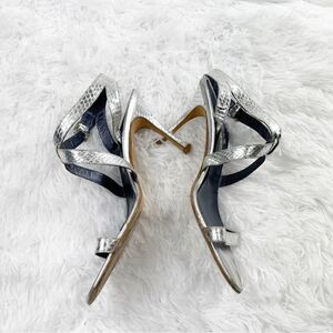 Manolo Blahnik Metallic Strappy Snakeskin Leather Heeled Sandals