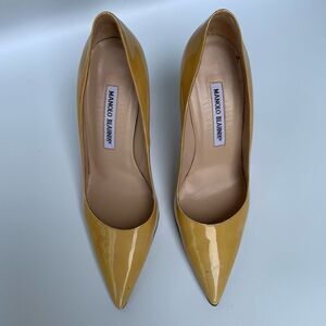 Manolo Blahnik Patent Leather Pointed Toe Pumps in Yellow Size 36.5/US 6.5