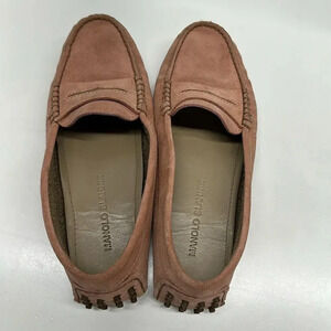 Manolo Blahnik Penny Loafers Shoes Slip On Suede Leather Light Pink Size 38 US 8