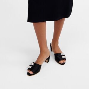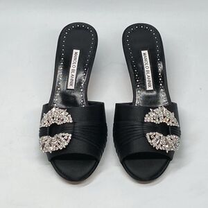 Manolo Blahnik Prinap 50MM Satin Crystal Buckle Mules size 36