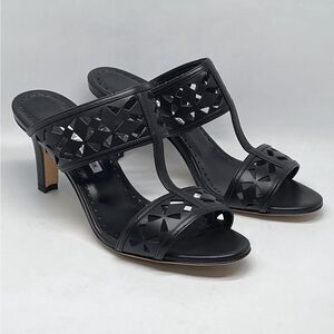 Perforated straps and a brogued insole give lacy dimension to this modern leather mules that's versatile enough for daily wear.