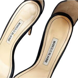 Manolo Blahnik Chaos High Heels in Two Tone Black Suede Tan 105 MM Sandals 39.5