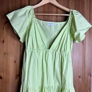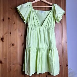 Manon Tilstra x NA-KD Flounce Shoulder Babydoll Mini Dress Green Women’s Large