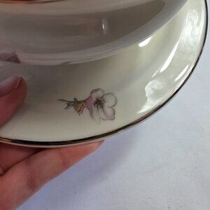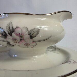 Manor House Spring Glory Gravy Boat & Underplate Pink & White Floral Gray Leaves