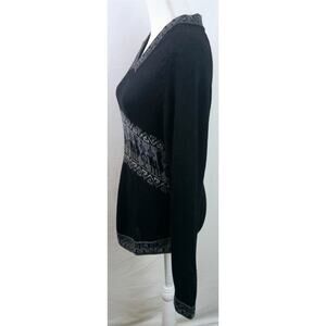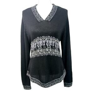 Manos de la Comunidad Peruvian SZ M 100% Baby Alpaca Sweater V Neck Black Gray