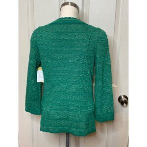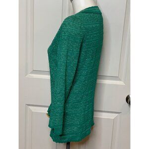 Manouch Pauline Teal Green & Metallic Gold Ruffle Cardigan, Size M