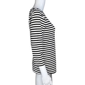 Manoukian Shirt Womens Small Black White Striped Tee TShirt Essential Casual