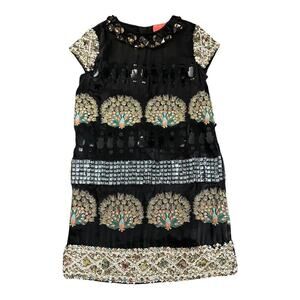Manoush Black Beaded Sequin Peacock Shift Dress Size 4