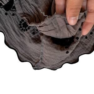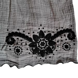 Manoush Boho Embroidered Peasant Top Gray Black Cotton Blouse Size L