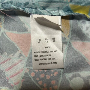 Manoush Geometric Button Down Shirt With Front Pocket 100% Silk Sz 10 F