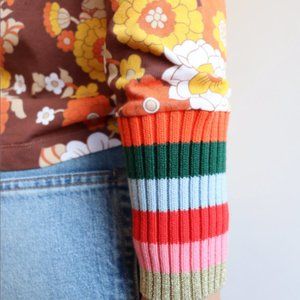 Manoush NWT vintage print cotton tee. retro 70s floral, rainbow stripes. L