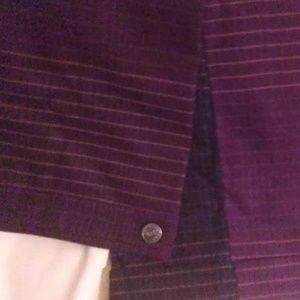 This purple, light purple, and black pinstripe scarf will remind you of old-fashion tailoring. Its soft wool will keep you warm in the winter. Measures 12" x 3'