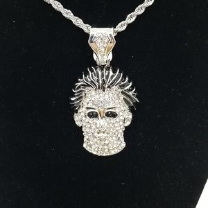 Michael Myers on silver plate frame with aa graded cz's covering the face and hasp 2 black for eyes and hand painted black hair.