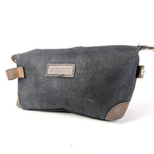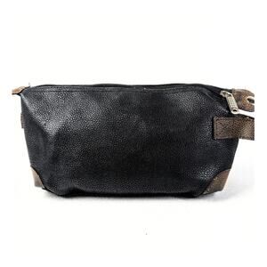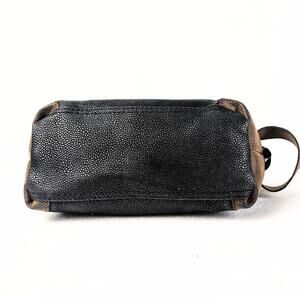 Exterior: Black & Brown Faux Leather. Side Handle.