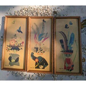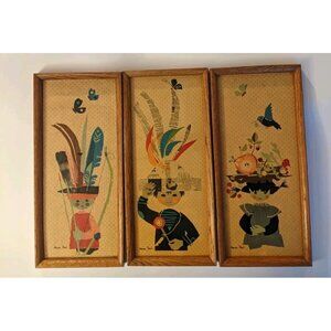 Manse Post Signed Prints Set of 3 Framed Multimedia Child Imagination Vtg 15x6.5
