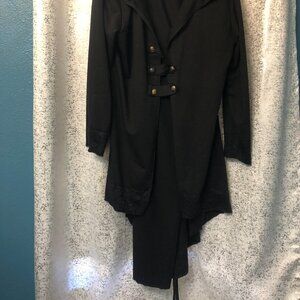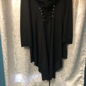 Dramatic, romantic, and perfectly gothic โ this Mansilifei black jacket makes a stunning statement. Featuring lace trim at the sleeve wrists and hem, corset-style lacing in the back for an adjustable fit, and a high-low cut that flatters every curve. The hood and three strap button-front closure add both mystery and structure, while the lightweight fabric offers comfortable stretch.